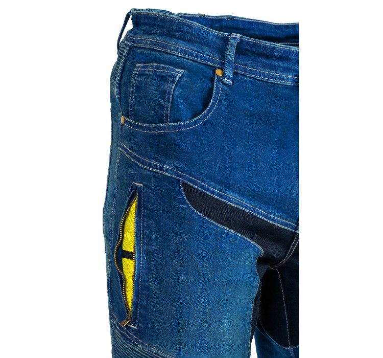 - Material Dyneema in Kombination mit dem Material Denim bilden konkurrenzlose Eigenschaften der Motorradhose
